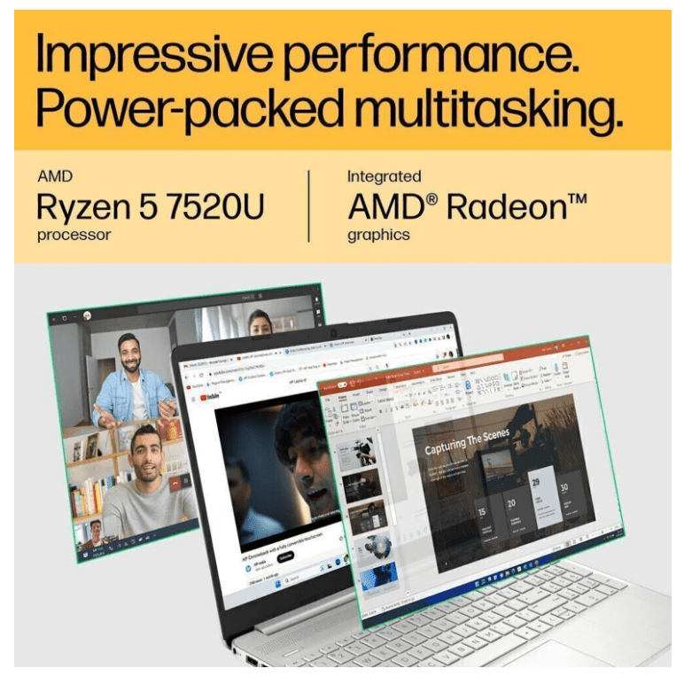 The HP 15s is designed for stable and reliable daily use. It usually comes with Intel i3 (12th Gen) or Ryzen 5 processors, which are enough for office work, browsing, and media consumption.